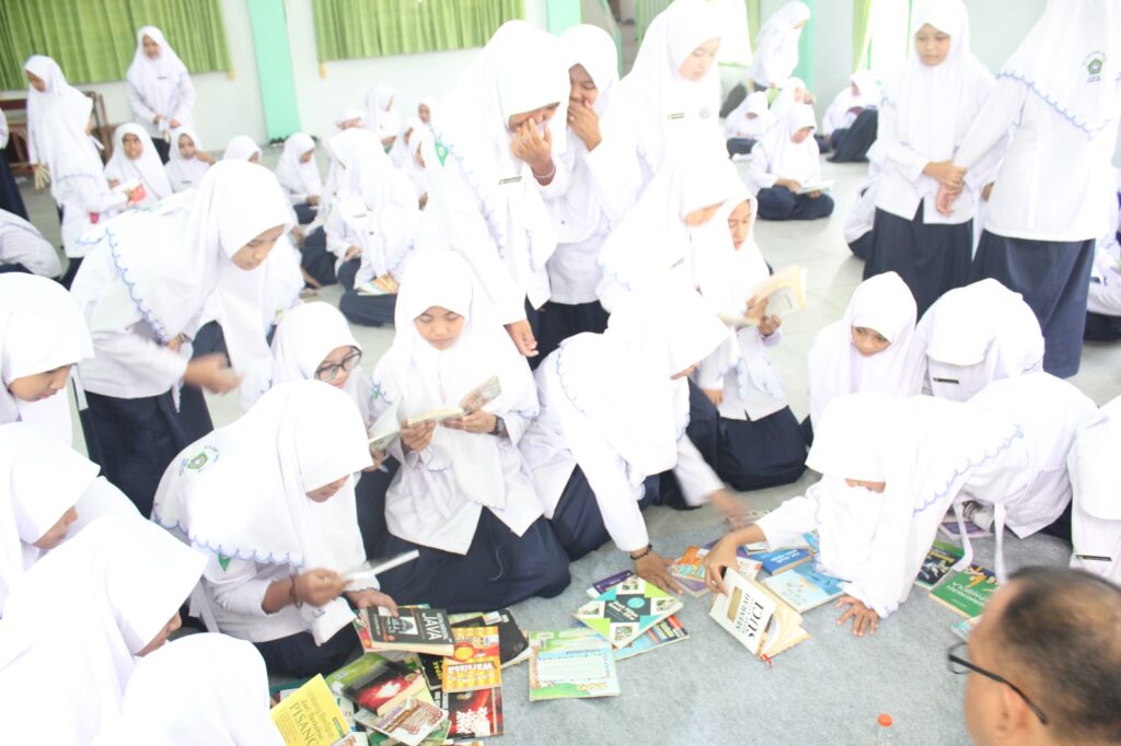 Tingkatkan Literasi, Perpustakaan Keliling Hadir di MTs Miftahul Qulub Polagan